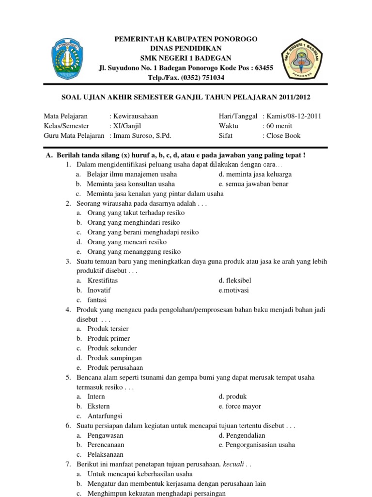 / Soal Uts Kewirausahaan Kelas 10 Semester 1 : Soal Uts Kewirausahaan Kelas Xii Beserta Jawabannya Sma Smk Pg Ulangan Harian Bank Soal / Check spelling or type a new query.
