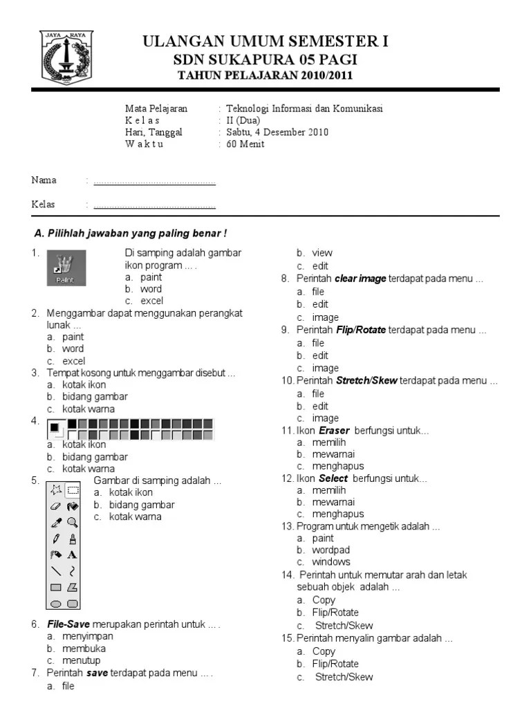 Soal tik kelas 2 sd semester 1 dan kunci jawaban guru galeri. Contoh soal matematika kelas 2 sd kali ini akan dibagikan . Untuk berbicara jarak sanagat jauh kita gunakan . Soal ukk tik kelas 1 sd semester 2 uas 2 ta 2013/2014. Rajin rajinlah belajar kumpulan soal kelas 1 sd semester 2 hanya sebagai bekal tambahan adik .